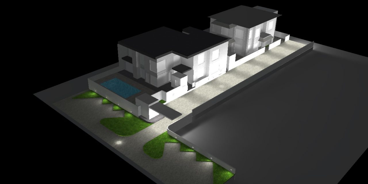 Ce projet n’était connu que lors de la phase finale de mise en œuvre. En tant que tel, il n’existait que la possibilité d’intervention dans les dispositifs externes et dans les équipements de contrôle. L’étude d’éclairage proposée était basée sur l’architecture moderne des villas, de style européen. Les équipements de contrôle appliqués, avec des définitions en métal, ont renforcé cette volonté du client.
